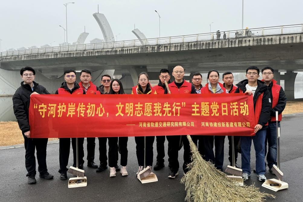 軌道研究院、新基建公司聯合開展 “守河護岸傳初心,文明志愿我先行” 主題黨日活動,組織志愿者赴賈魯河畔進行垃圾清掃。志愿者們身著志愿馬甲,攜帶工具沿河岸開展 “拉網式” 清理,重點清除白色垃圾、塑料廢棄物等,讓河岸周邊恢復干凈整潔。