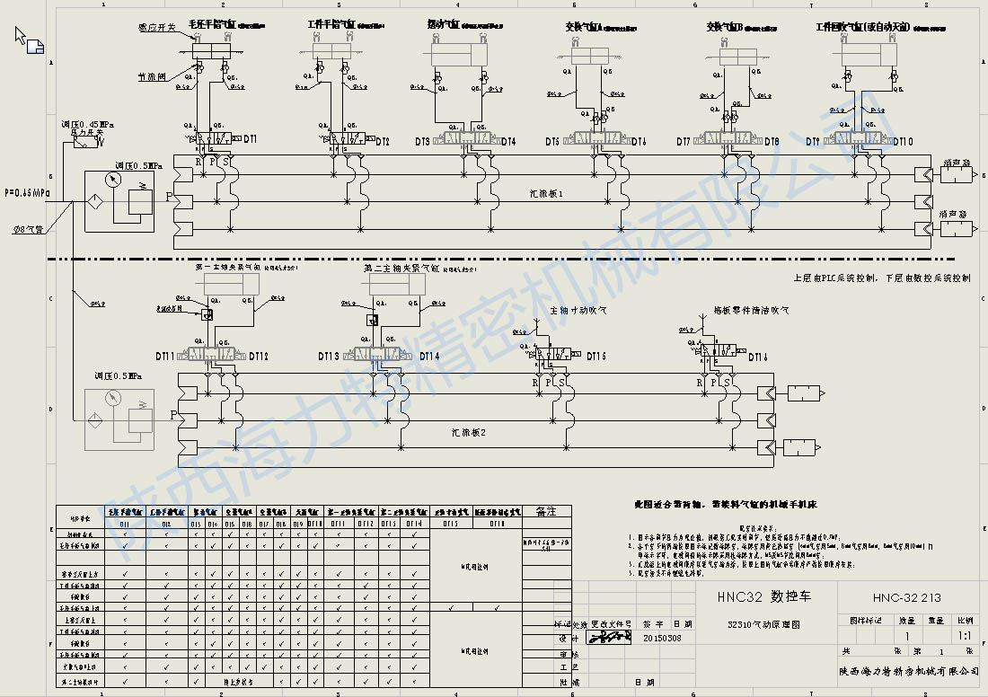 上圖是我司開發(fā)的HNC-32系列自動控制,氣動原理圖。公司采用較為先進(jìn)的設(shè)計(jì)理念,對每個動作用邏輯圖驗(yàn)證,保證運(yùn)動的合理可靠性。